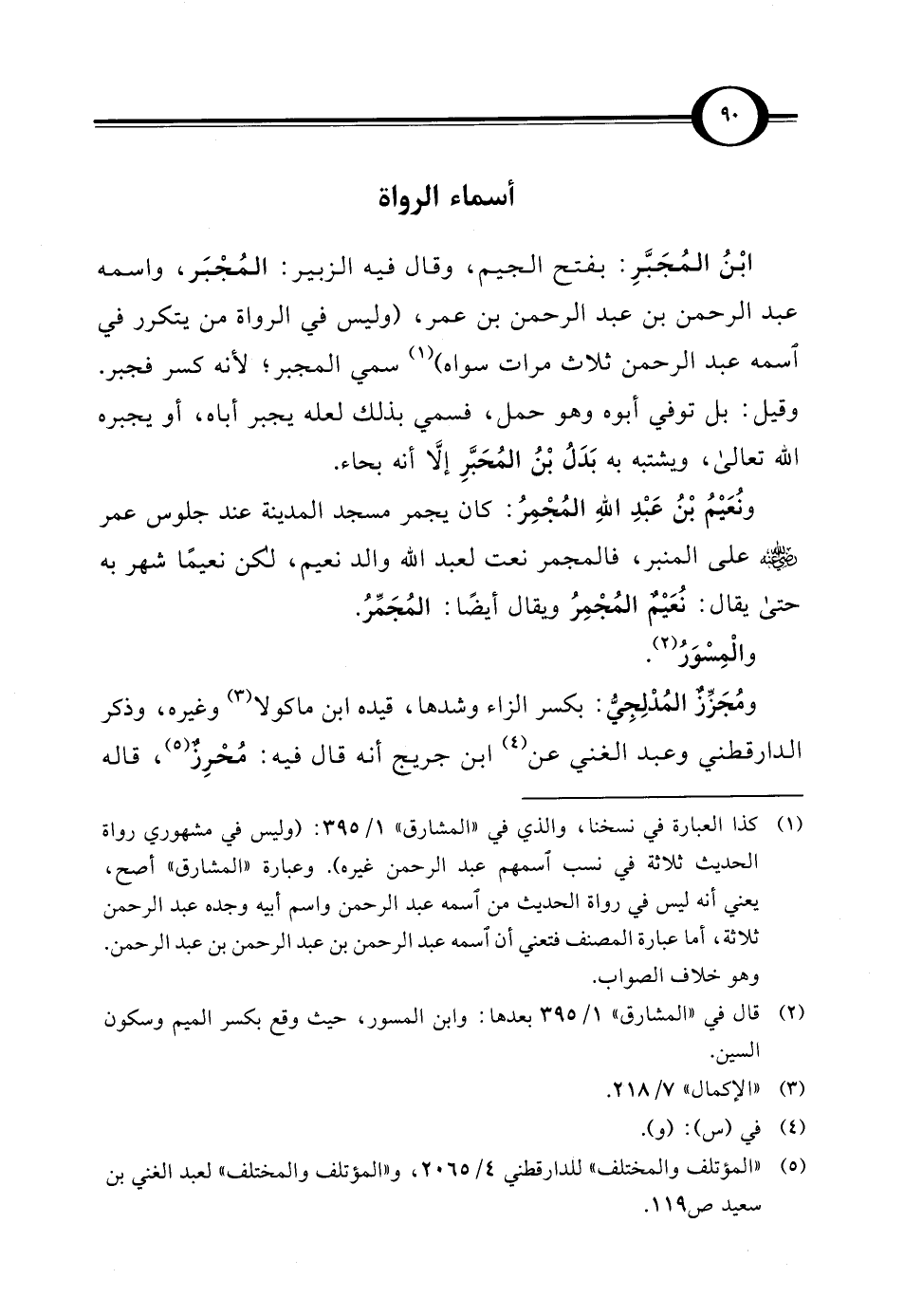(¬1) كذا العبارة في نسخنا، والذي في "المشارق" 1/ 395: (وليس في مشهوري رواة الحديث ثلاثة في نسب اسمهم عبد الرحمن غيره). وعبارة "المشارق" أصح، يعني أنه ليس في رواة الحديث من اسمه عبد الرحمن واسم أبيه وجده عبد الرحمن ثلاثة، أما عبارة المصنف فتعني أن اسمه عبد الرحمن بن عبد الرحمن بن عبد الرحمن. وهو خلاف الصواب.