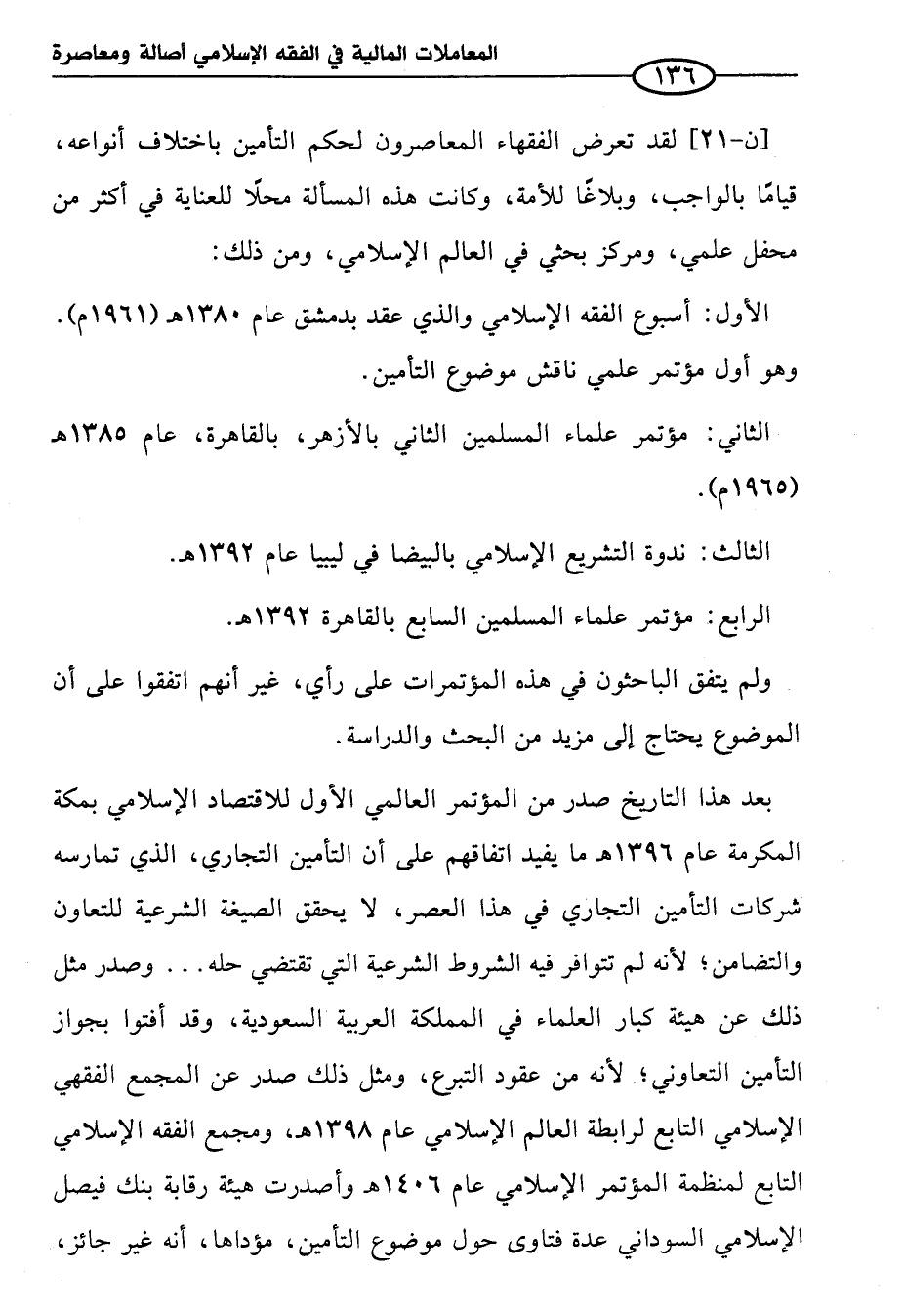 الأول: أسبوع الفقه الإسلامي والذي عقد بدمشق عام ١٣٨٠ ص (١٩٦١ م). وهو أول مؤتمر علمي ناقش موضوع التأمين.