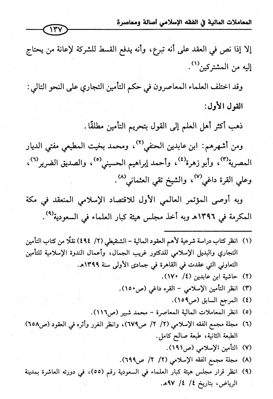 وبه أوصى المؤتمر العالمي الأول للاقتصاد الإِسلامي المنعقد في مكة المكرمة في ١٣٩٦ هـ