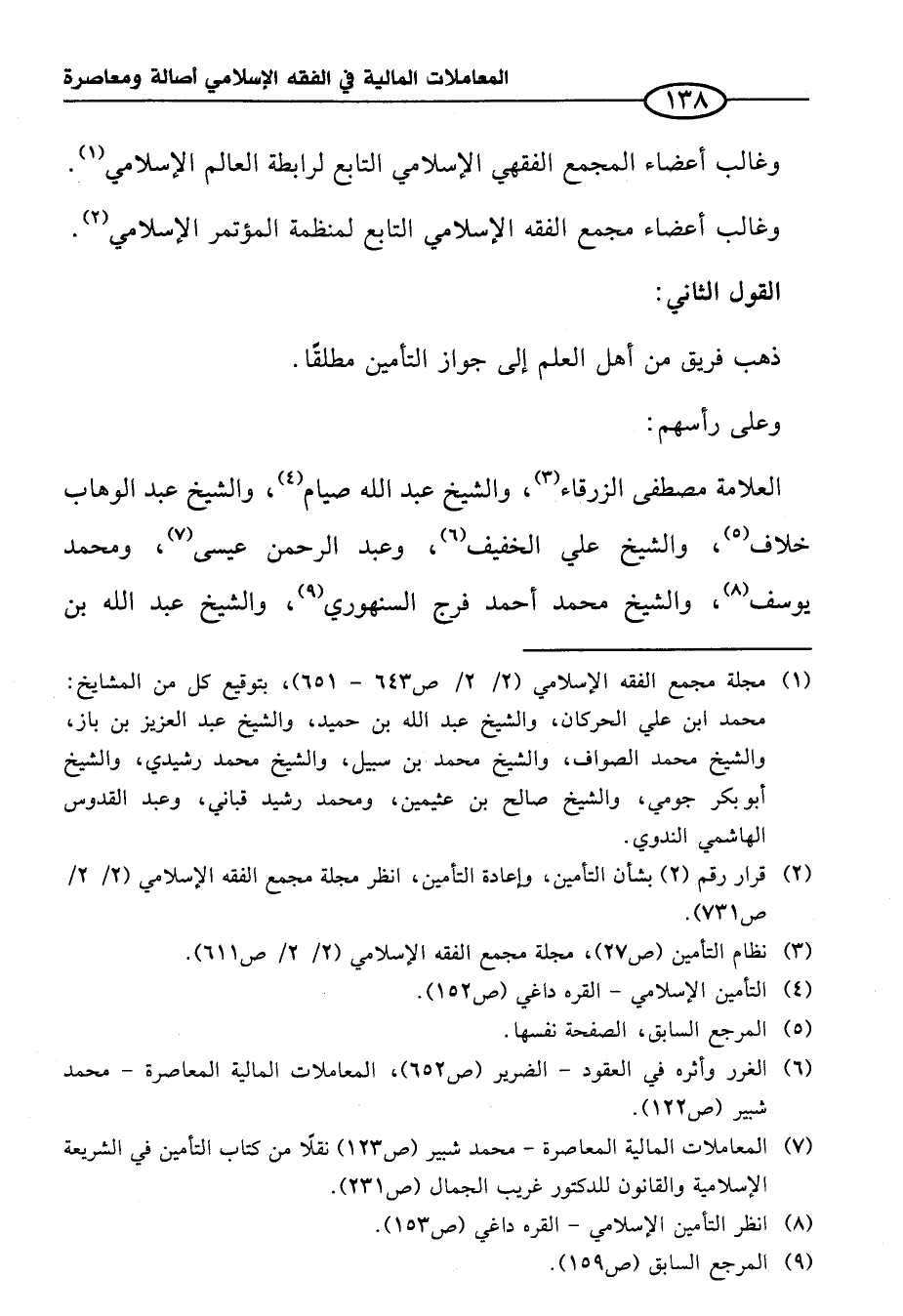 (¬٢) قرار رقم (٢) بشأن التأمين، وإعادة التأمين، انظر مجلة مجمع الفقه الإِسلامي (٢/ ٢/ ص ٧٣١).