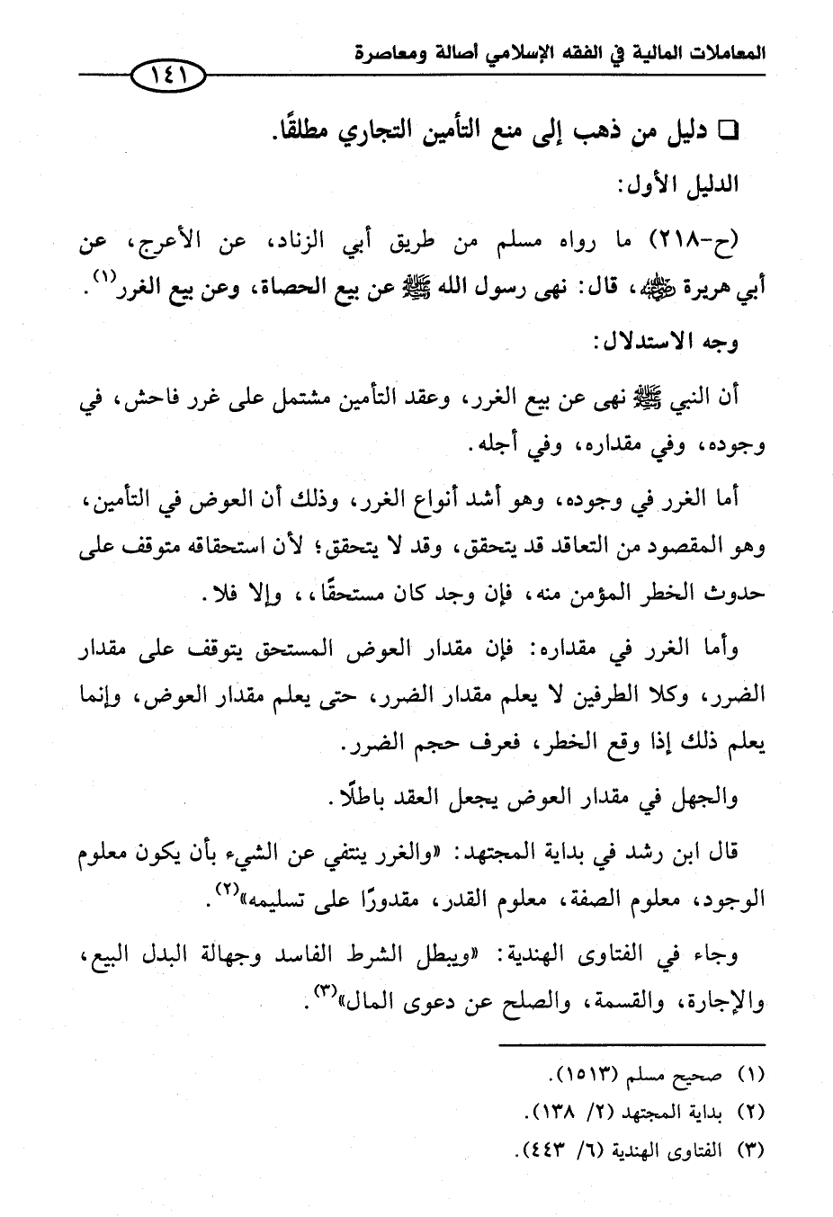 * دليل من ذهب إلى منع التأمين التجاري مطلقًا.