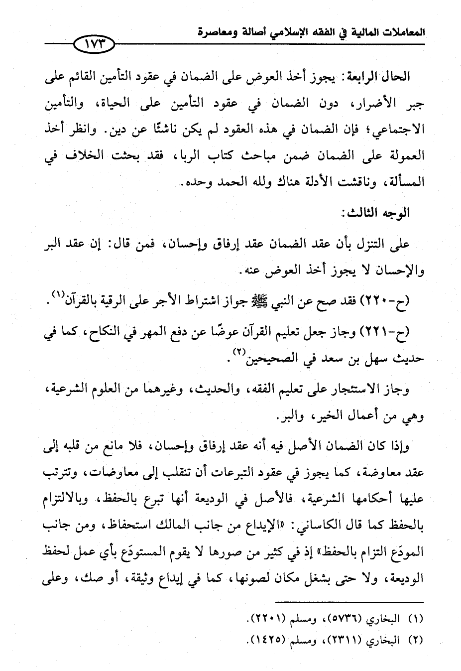 الحال الرابعة: يجوز أخذ العوض على الضمان في عقود التأمين القائم على جبر الأضرار، دون الضمان في عقود التأمين على الحياة، والتأمين الاجتماعي , فإن الضمان في هذه العقود لم يكن ناشئًا عن دين. وانظر أخذ العمولة على الضمان ضمن مباحث كتاب الربا، فقد بعثت الخلاف في المسألة، وناقشت الأدلة هناك ولله الحمد وحده.