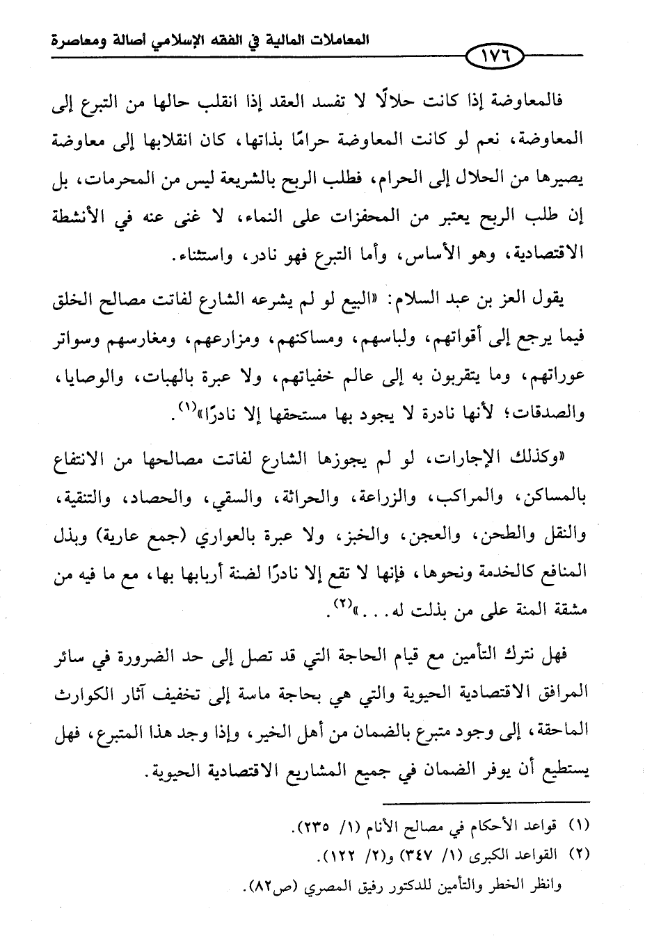 وانظر الخطر والتأمين للدكتور رفيق المصري (ص ٨٢).