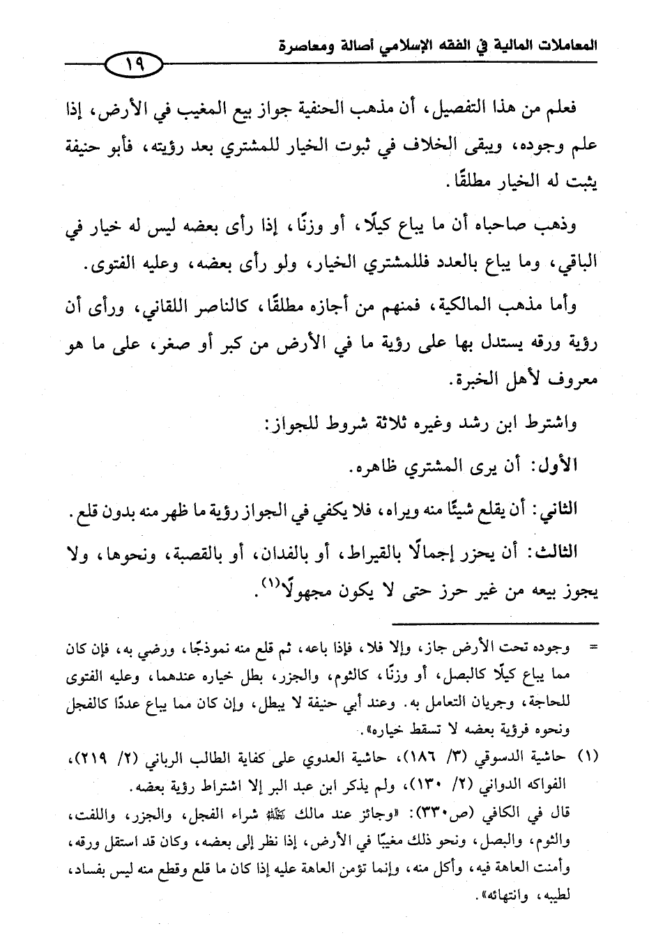 (¬١) حاشية الدسوقي (٣/ ١٨٦)، حاشية العدوي على كفاية الطالب الرباني (٢/ ٢١٩)، الفواكه الدواني (٢/ ١٣٠)، ولم يذكر ابن عبد البر إلا اشتراط رؤية بعضه.
