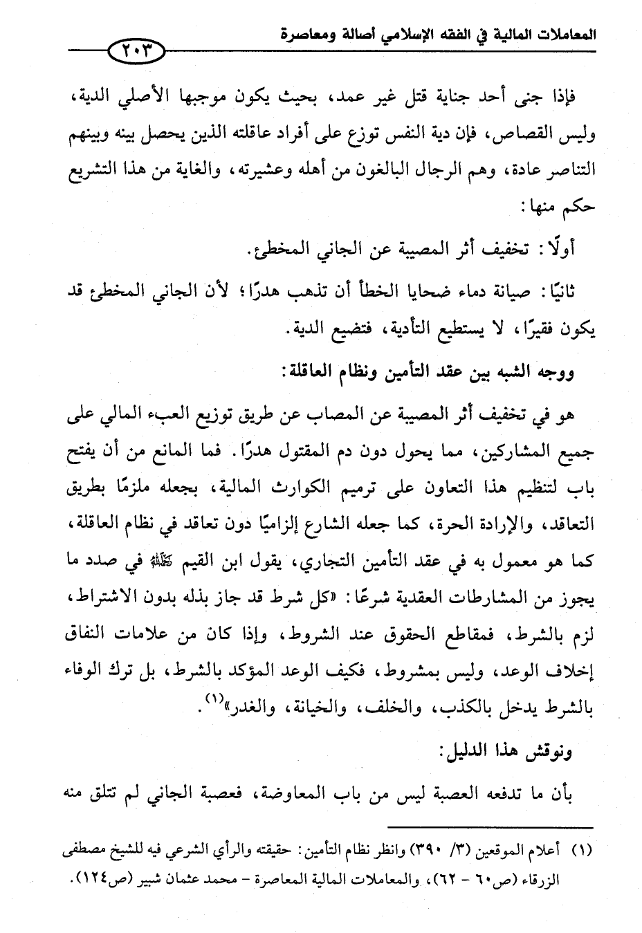 (¬١) أعلام الموقعين (٣/ ٣٩٠) وانظر نظام التأمين: حقيقته والرأي الشرعي فيه للشيخ مصطفى الزرقاء (ص ٦٠ - ٦٢)، والمعاملات المالية المعاصرة - محمد عثمان شبير (ص ١٢٤).