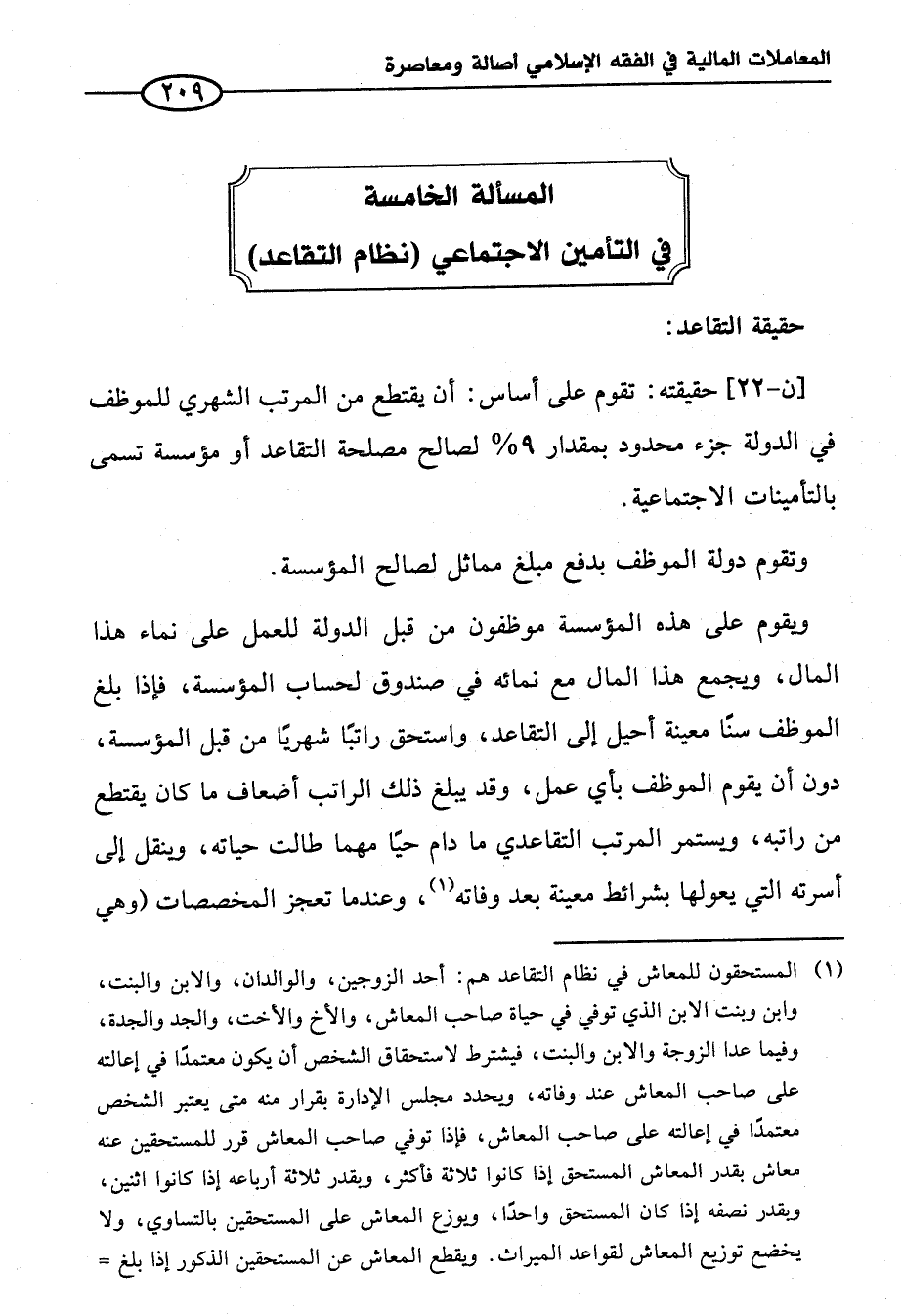 المسألة الخامسة في التأمين الاجتماعي (نظام التقاعد)