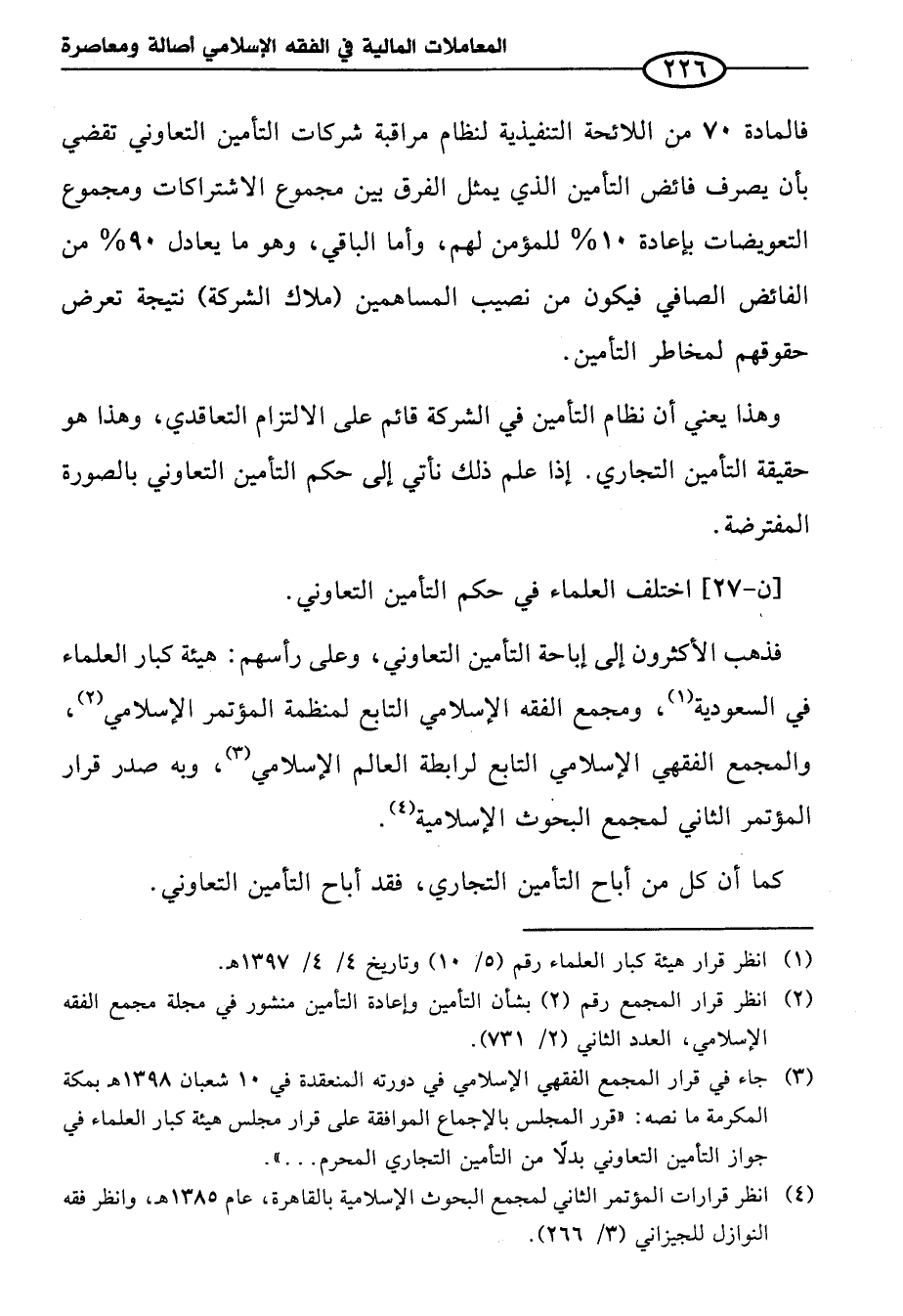 بمكة المكرمة ما نصه: "قرر المجلس بالإجماع الموافقة على قرار مجلس هيئة كبار العلماء في جواز التأمين التعاوني بدلًا من التأمين التجاري المحرم ... ".