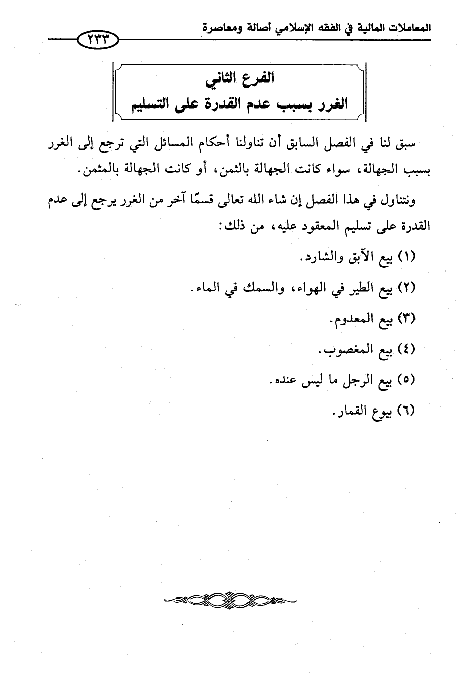 ونتناول في هذا الفصل إن شاء الله تعالى قسمًا آخر من الغرر يرجع إلى عدم القدرة على تسليم المعقود عليه، من ذلك: