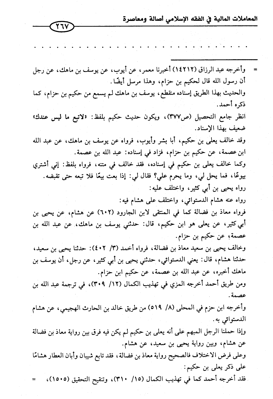 انظر جامع التحصيل (ص ٣٧٧)، ويكون حديث حكيم بلفظ: "لا تبع ما ليس عندك" ضعيف بهذا الإسناد.