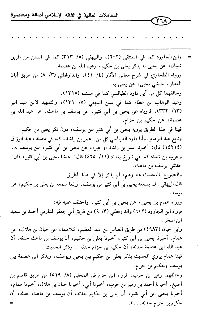 وعبد الوهاب بن عطاء كما في سنن البيهقي (٥/ ١٣١)، والتمهيد لابن عبد البر (١٣/ ٣٣٢)، فروياه عن يحيى بن أي كثير، عن يوسف بن ماهك، عن عبد الله بن عصمة، عن حكيم بن حزام.