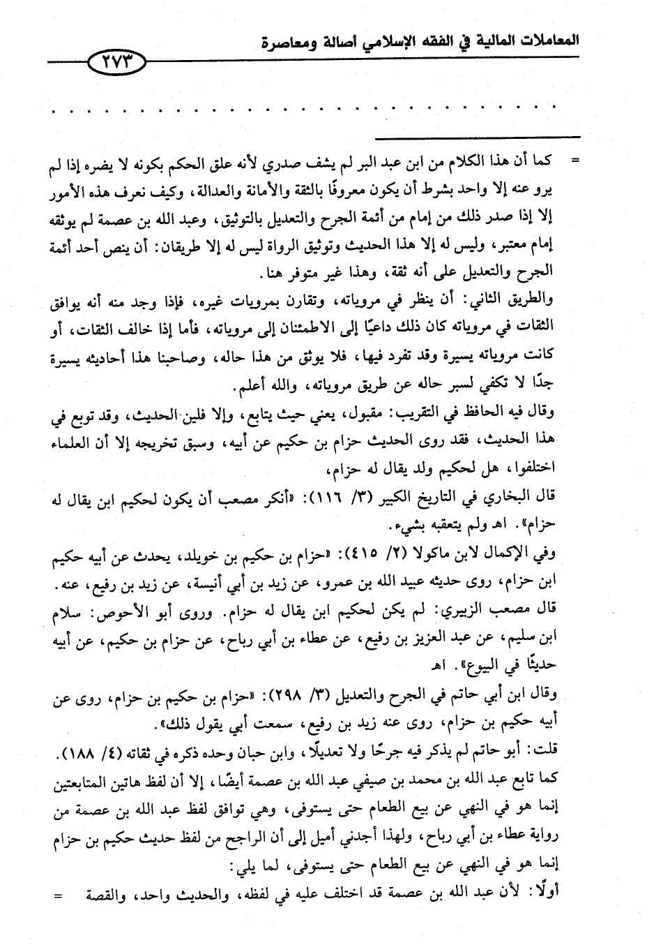 =كما أن هذا الكلام من ابن عبد البر لم يشف صدري لأنه علق الحكم بكونه لا يضره إذا لم يرو عنه إلا واحد بشرط أن يكون معروفاً بالثقة والأمانة والعدالة، وكيف نعرف هذه الأمور إلا إذا صدر ذلك من إمام من أئمة الجرح والتعديل بالتوثيق، وعبد الله بن عصمة لم يوثقه إمام معتبر، وليس له إلا هذا الحديث وتوثيق الرواة ليس له إلا طريقان: أن ينص أحد أئمة الجرح والتعديل على أنه ثقة، وهذا غير متوفر هنا.