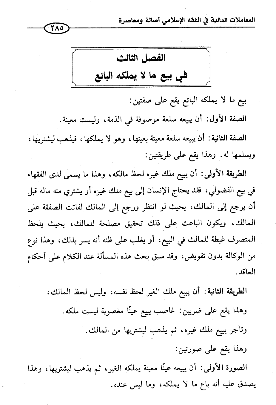 الفصل الثالث في بيع ما لا يملكه البائع