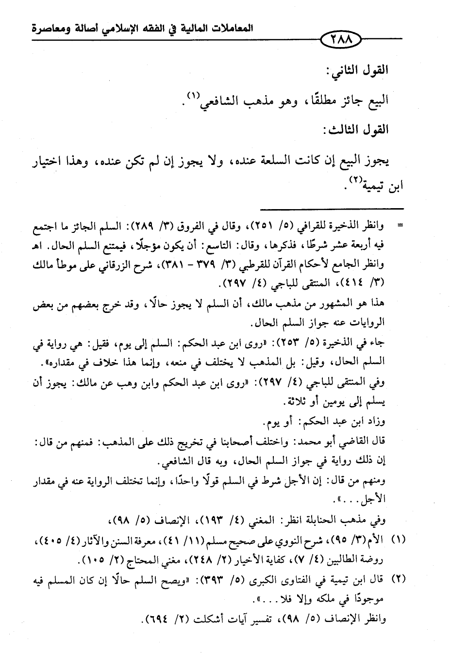 (¬٢) قال ابن تيمية في الفتاوى الكبرى (٥/ ٣٩٣): "ويصح السلم حالاً إن كان المسلم فيه موجودًا في ملكه وإلا فلا ... ".