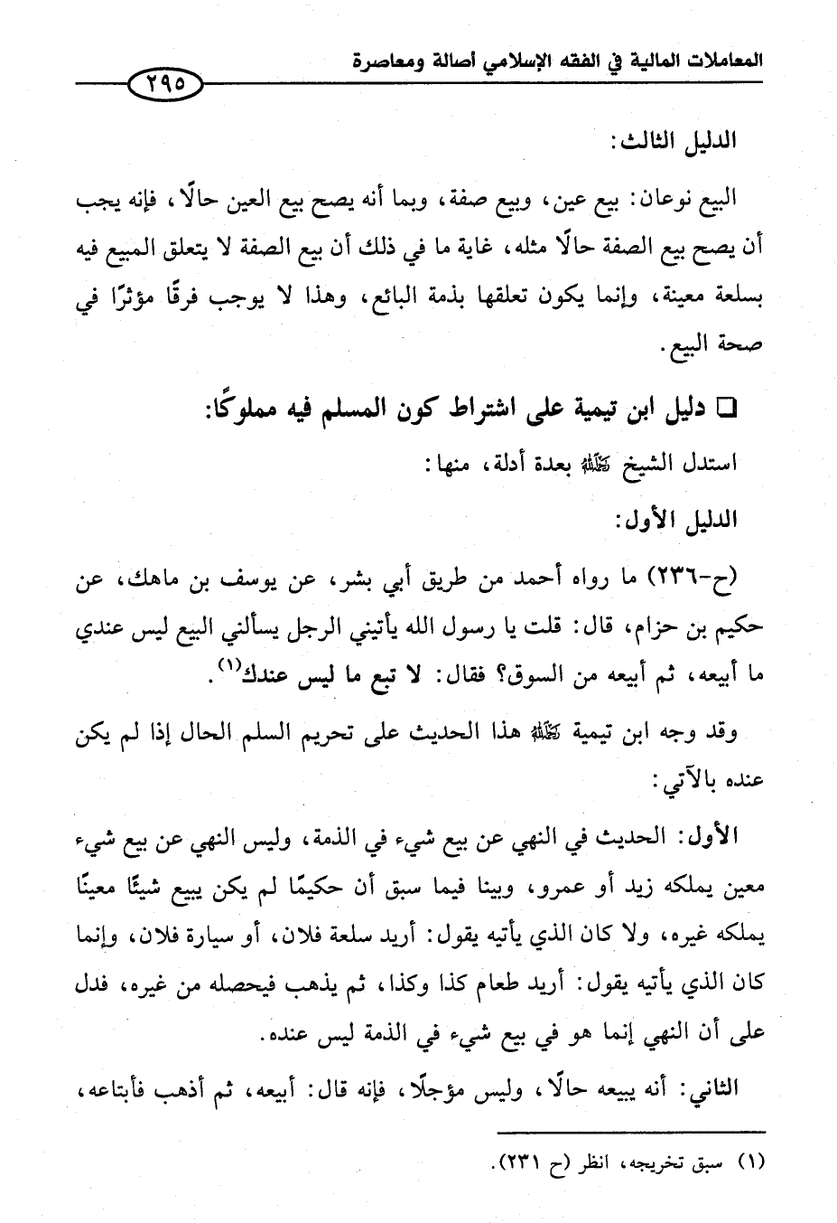 * دليل ابن تيمية على اشتراط كون المسلم فيه مملوكًا: