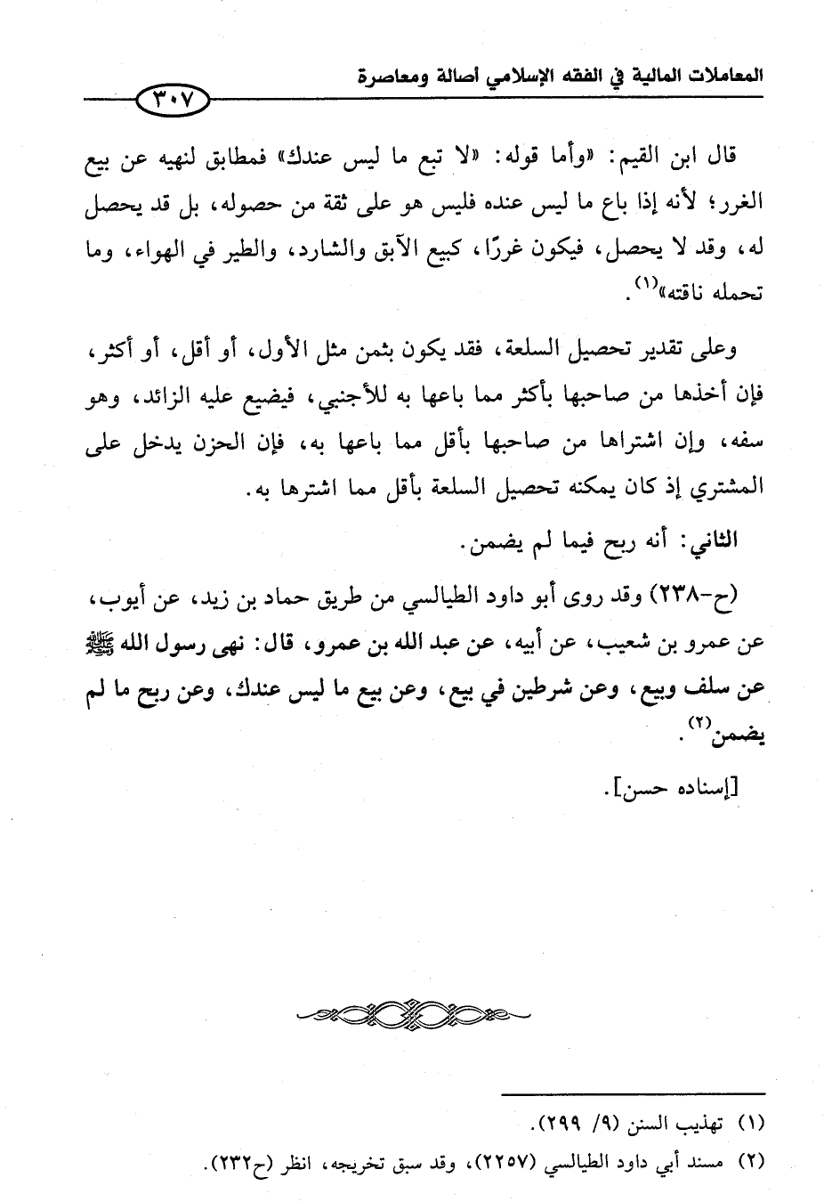 (ح-٢٣٨)، وقد روى أبو داود الطيالسي من طريق حماد بن زيد، عن أيوب، عن عمرو بن شعيب، عن أبيه، عن عبد الله بن عمرو، قال: نهى رسول الله - صلى الله عليه وسلم - عن سلف وبيع، وعن شرطين في بيع، وعن بيع ما ليس عندك، وعن ربح ما لم يضمن (¬٢).