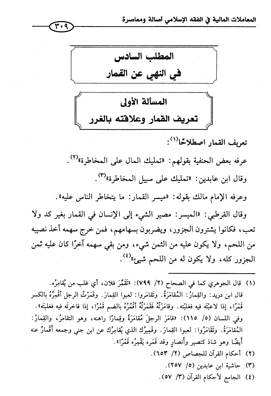 المسألة الأولى تعريف القمار وعلاقته بالغرر