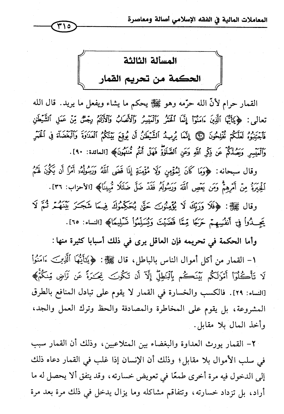 المسألة الثالثة الحكمة من تحريم القمار