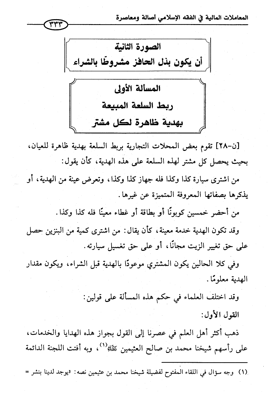 المسألة الأولى ربط السلعة المبيعة بهدية ظاهرة لكل مشتر