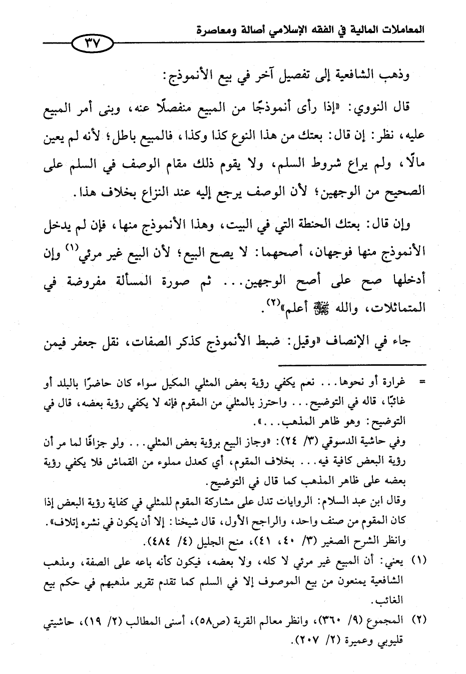 قال النووي: "إذا رأى أنموذجًا من المبيع منفصلًا عنه، وبنى أمر المبيع عليه، نظر: إن قال: بعتك من هذا النوع كذا وكذا، فالمبيع باطل؛ لأنه لم يعين مالًا، ولم يراع شروط السلم، ولا يقوم ذلك مقام الوصف في السلم على الصحيح من الوجهين؛ لأن الوصف يرجع إليه عند النزاع بخلاف هذا.
