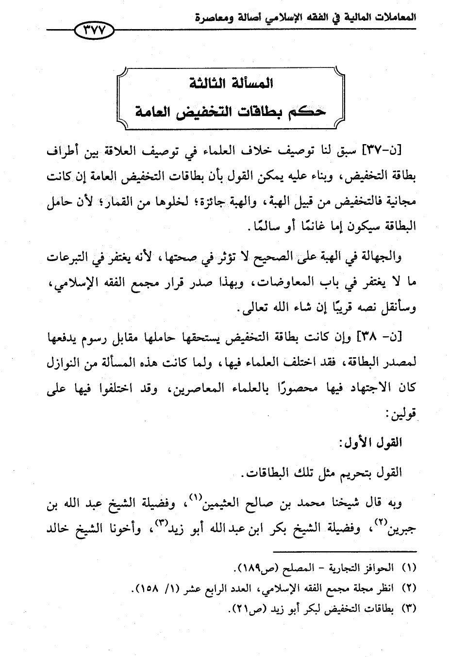 (¬٣) بطاقات التخفيض لبكر أبو زيد (ص ٢١).