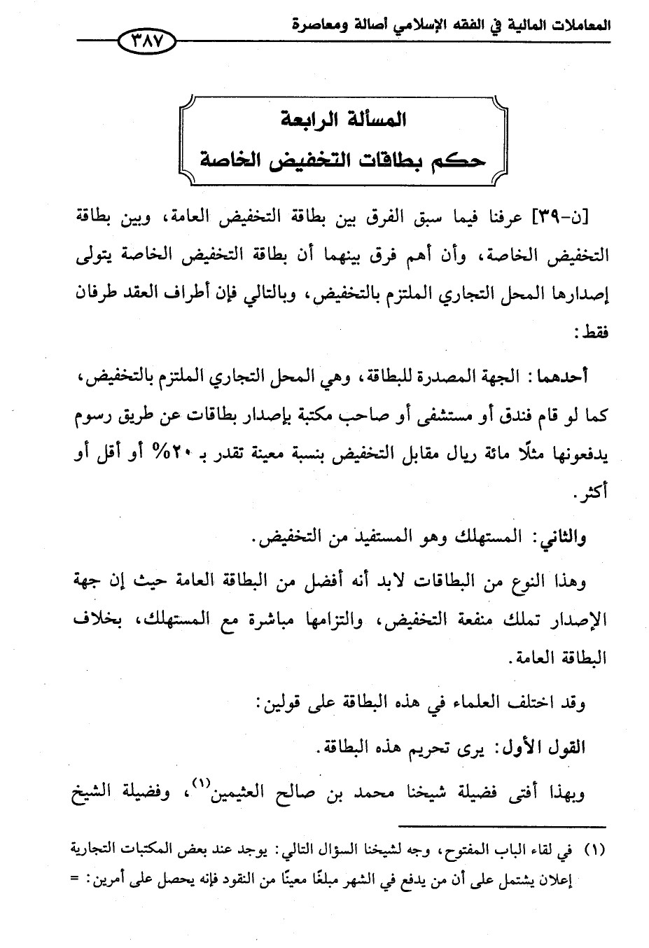 المسألة الرابعة حكم بطاقات التخفيض الخاصة