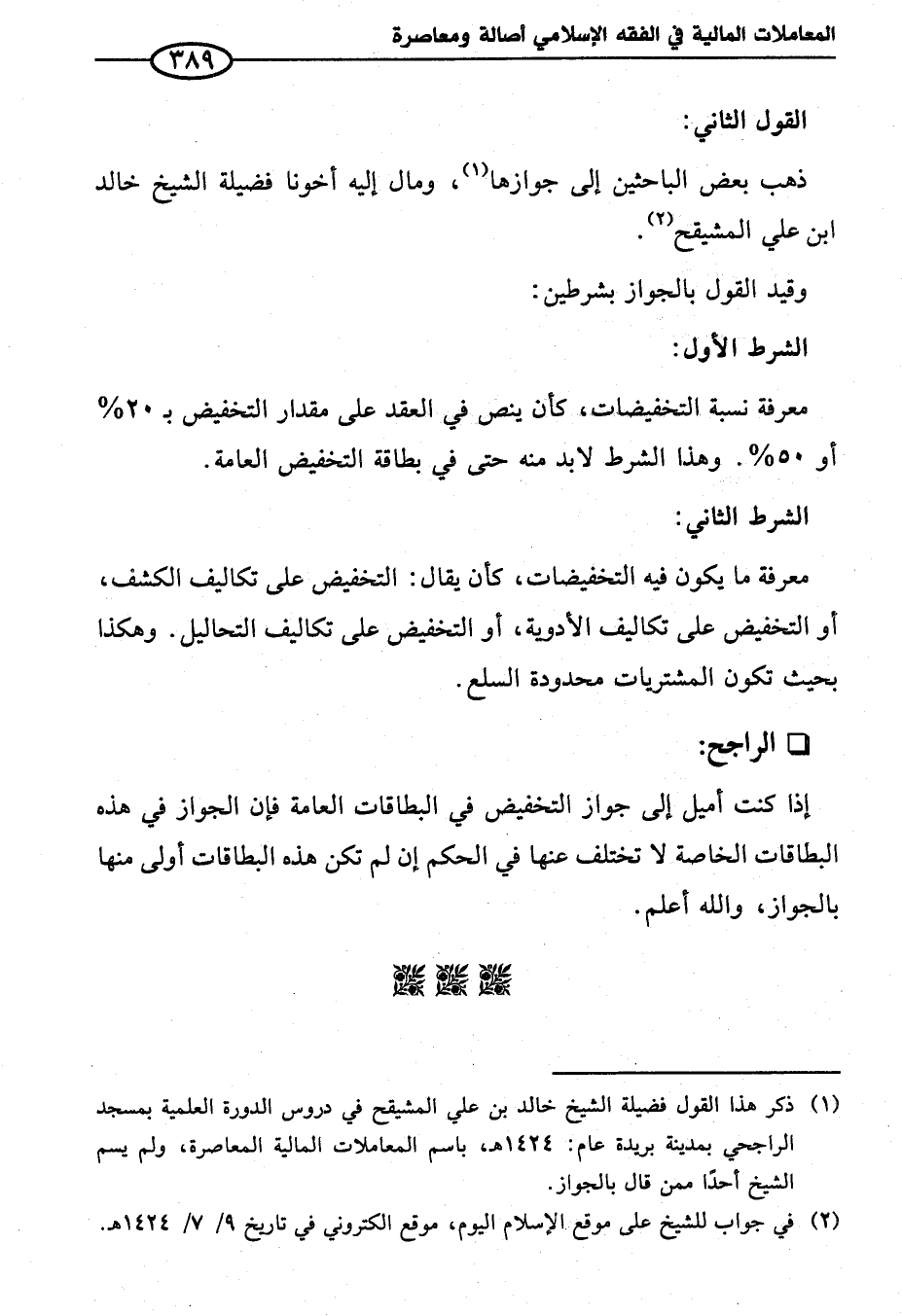 إذا كنت أميل إلى جواز التخفيض في البطاقات العامة فإن الجواز في هذه البطاقات الخاصة لا تختلف عنها في الحكم إن لم تكن هذه البطاقات أولى منها بالجواز، والله أعلم.