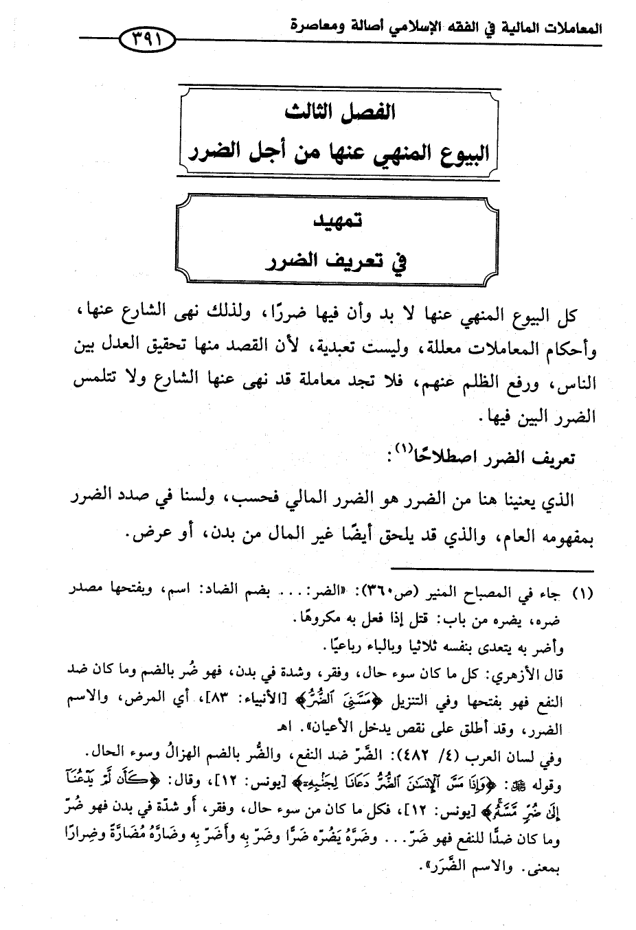 الفصل الثالث البيوع المنهي عنها من أجل الضرر