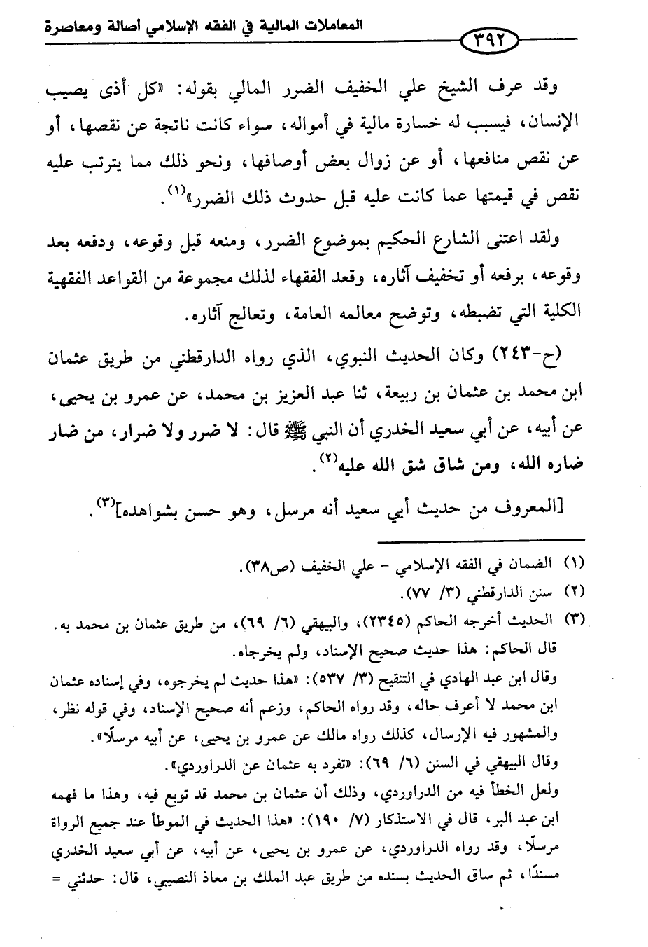 (¬١) الضمان في الفقه الإِسلامي - علي الخفيف (ص ٣٨).