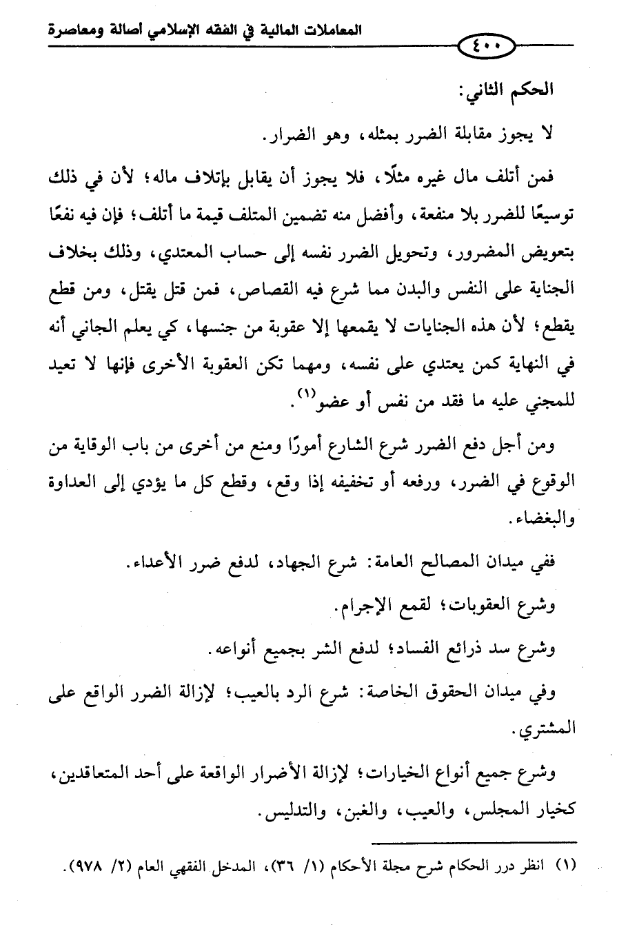 (¬١) انظر درر الحكام شرح مجلة الأحكام (١/ ٣٦)، المدخل الفقهي العام (٢/ ٩٧٨).