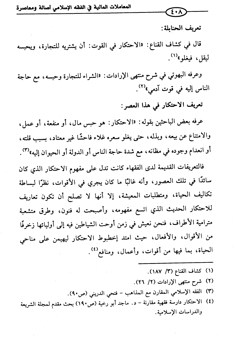 (¬٤) الاحتكار دارسة فقهية مقارنة - د. ماجد أبو رخية (ص ١٩٠) بحث مقدم لمجلة الشريعة والدراسات الإِسلامية.