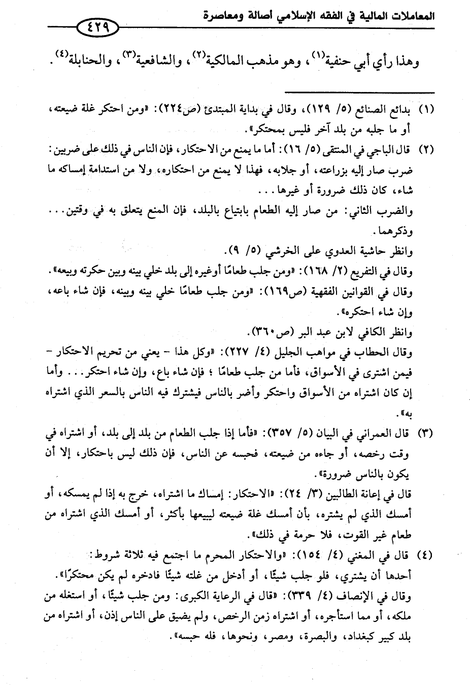 (¬١) بدائع الصنائع (٥/ ١٢٩)، وقال في بداية المبتدئ (ص ٢٢٤): "ومن احتكر غلة ضيعته، أو ما جلبه من بلد آخر فليس بمحتكر".