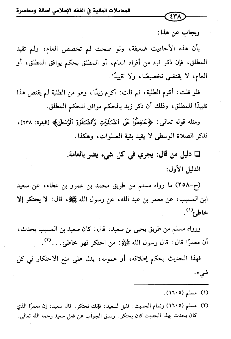 (¬٢) مسلم (١٦٠٥) وتمام الحديث: فقيل لسعيد: فإنك تحتكر. قال سعيد: إن معمراً الذي كان يحدث بهذا الحديث كان يحتكر. وسبق الجواب عن فعل سعيد رحمه الله تعالى.