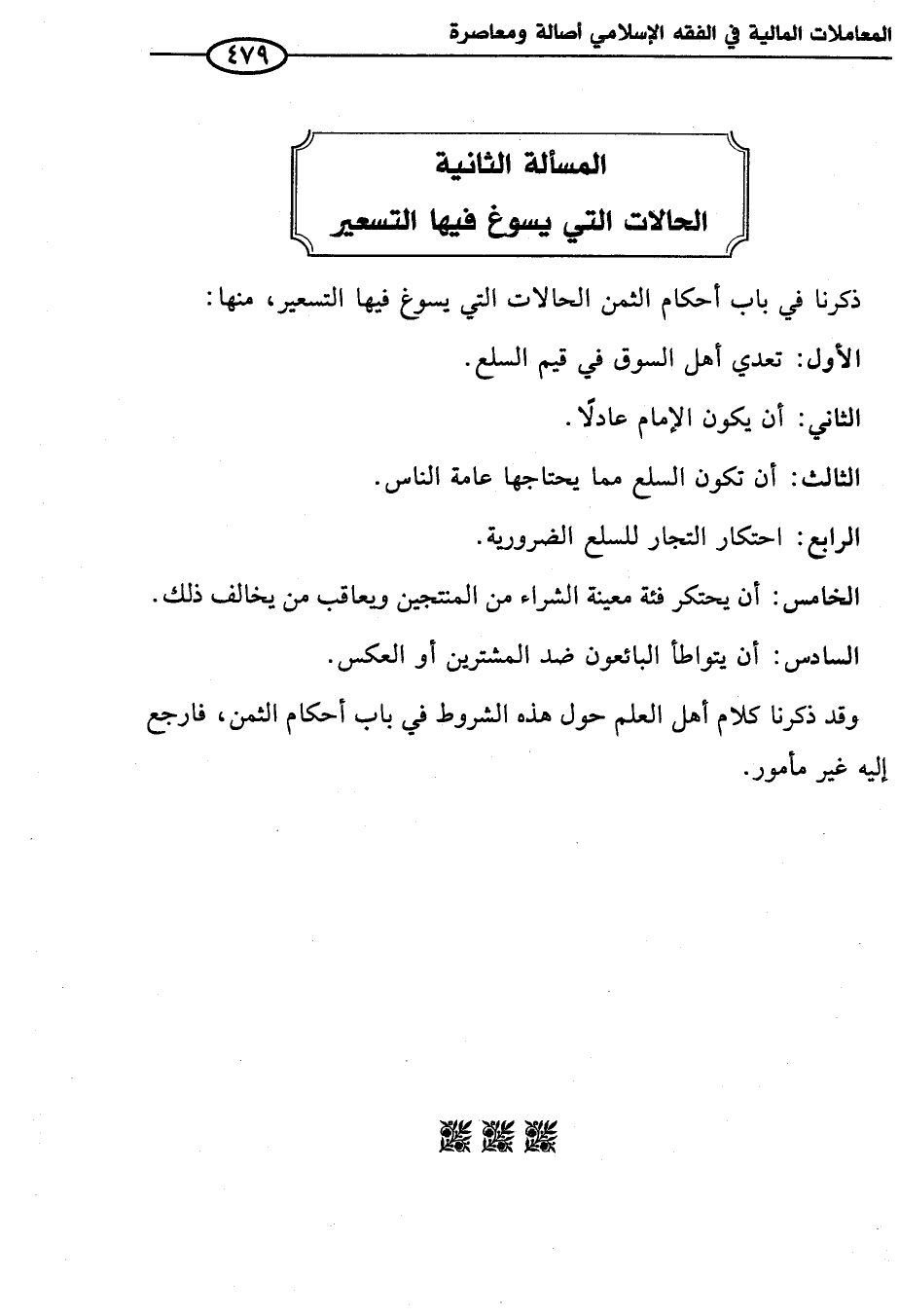 المسألة الثانية الحالات التي يسوغ فيها التسعير