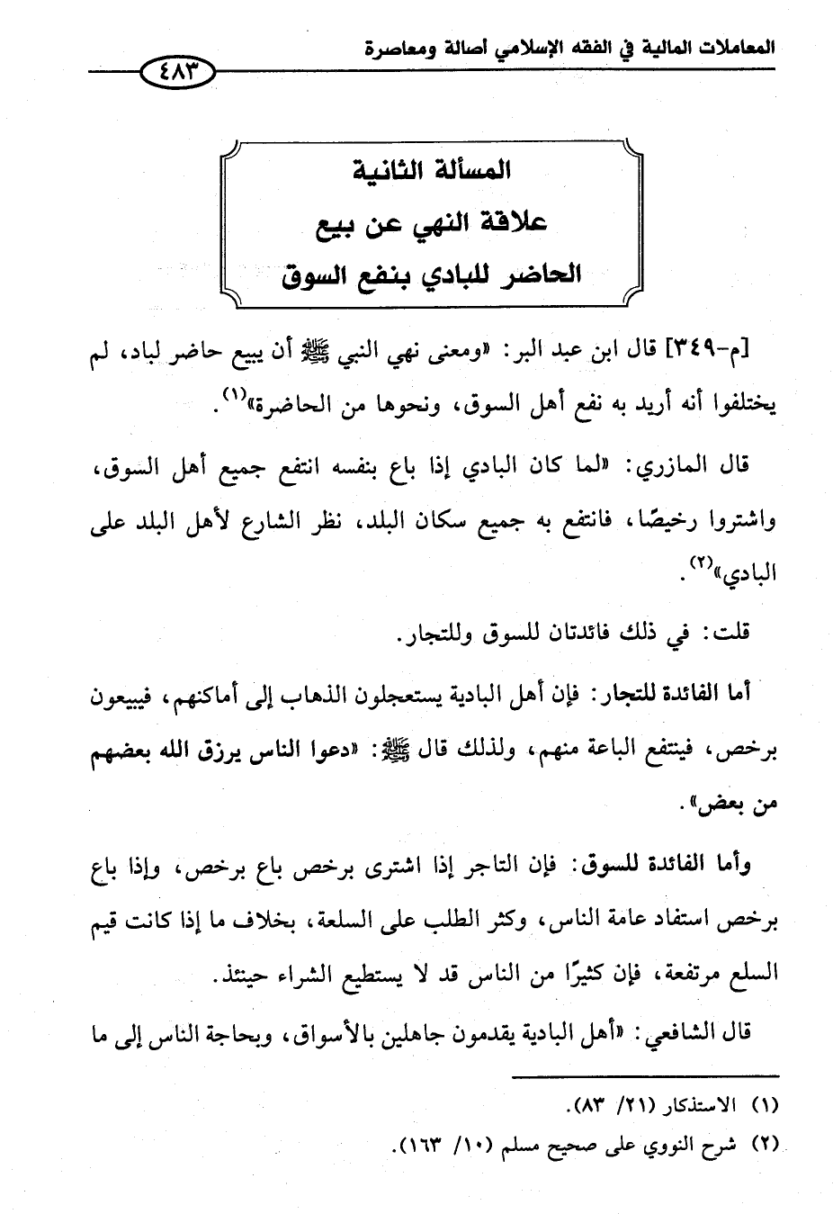 المسألة الثانية علاقة النهي عن بيع الحاضر للبادي بنفع السوق