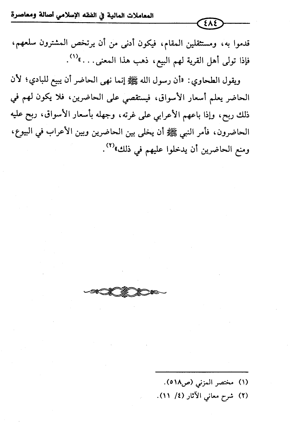 ويقول الطحاوي: "أن رسول الله - صلى الله عليه وسلم - إنما نهى الحاضر أن يبيع للبادي؛ لأن الحاضر يعلم أسعار الأسواق، فيستقصي على الحاضرين، فلا يكون لهم في ذلك ربح، وإذا باعهم الأعرابي على غرته، وجهله بأسعار الأسواق، ربح عليه الحاضرون، فأمر النبي - صلى الله عليه وسلم - أن يخلى بين الحاضرين وبين الأعراب في البيوع، ومنع الحاضرين أن يدخلوا عليهم في ذلك" (¬٢).