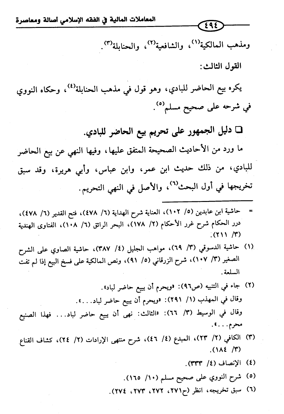 • دليل الجمهور على تحريم بيع الحاضر للبادي.