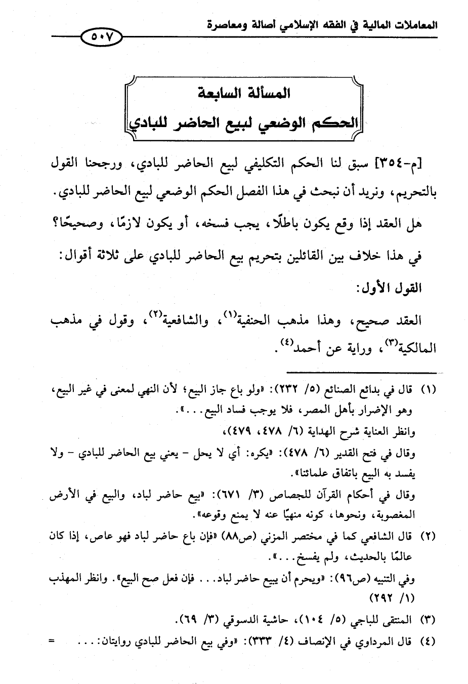المسألة السابعة الحكم الوضعي لبيع الحاضر للبادى