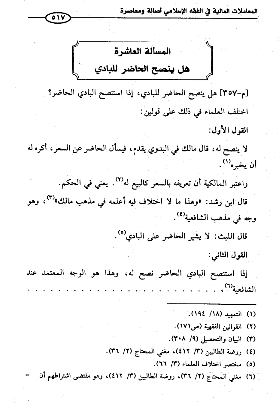 المسألة العاشرة هل ينصح الحاضر للبادي