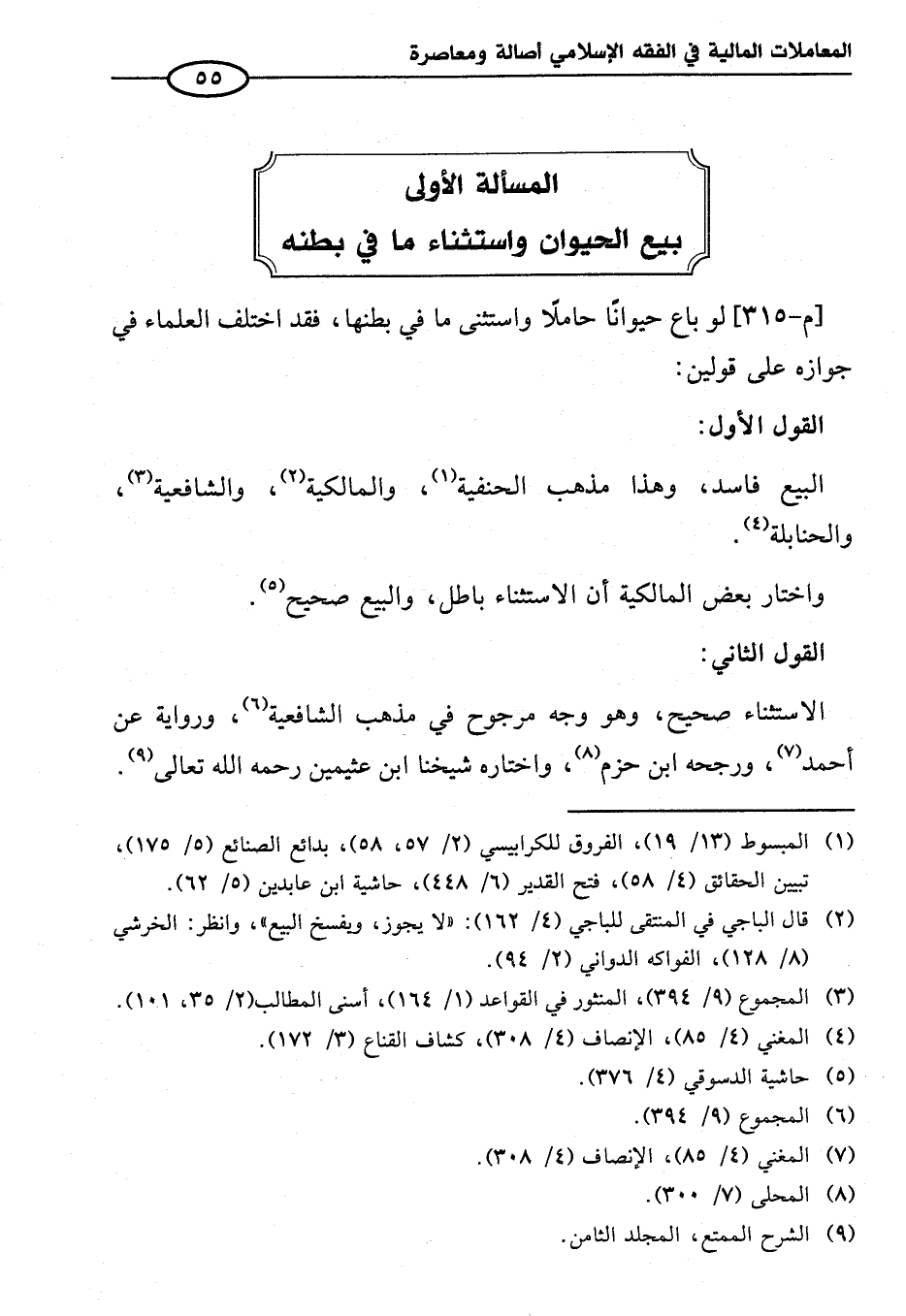 المسألة الأولى بيع الحيوان واستثناء ما في بطنه