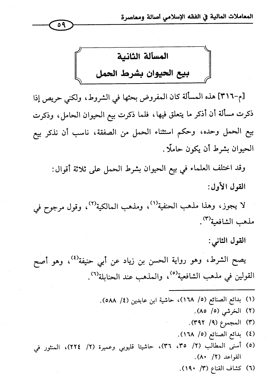 المسألة الثانية بيع الحيوان بشرط الحمل