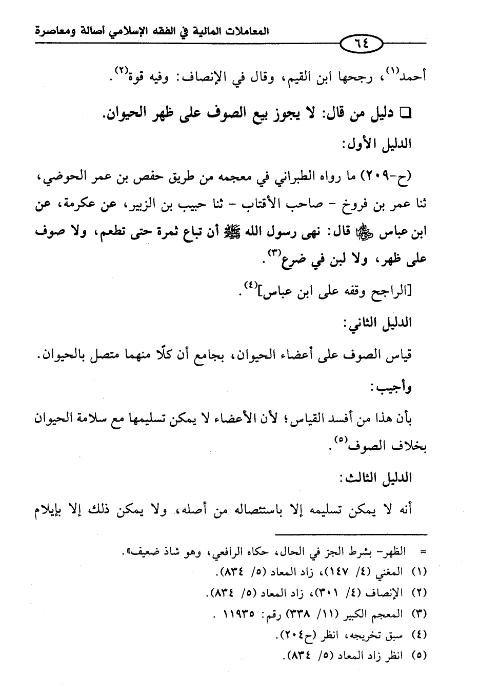 قياس الصوف على أعضاء الحيوان، بجامع أن كلًا منهما متصل بالحيوان.