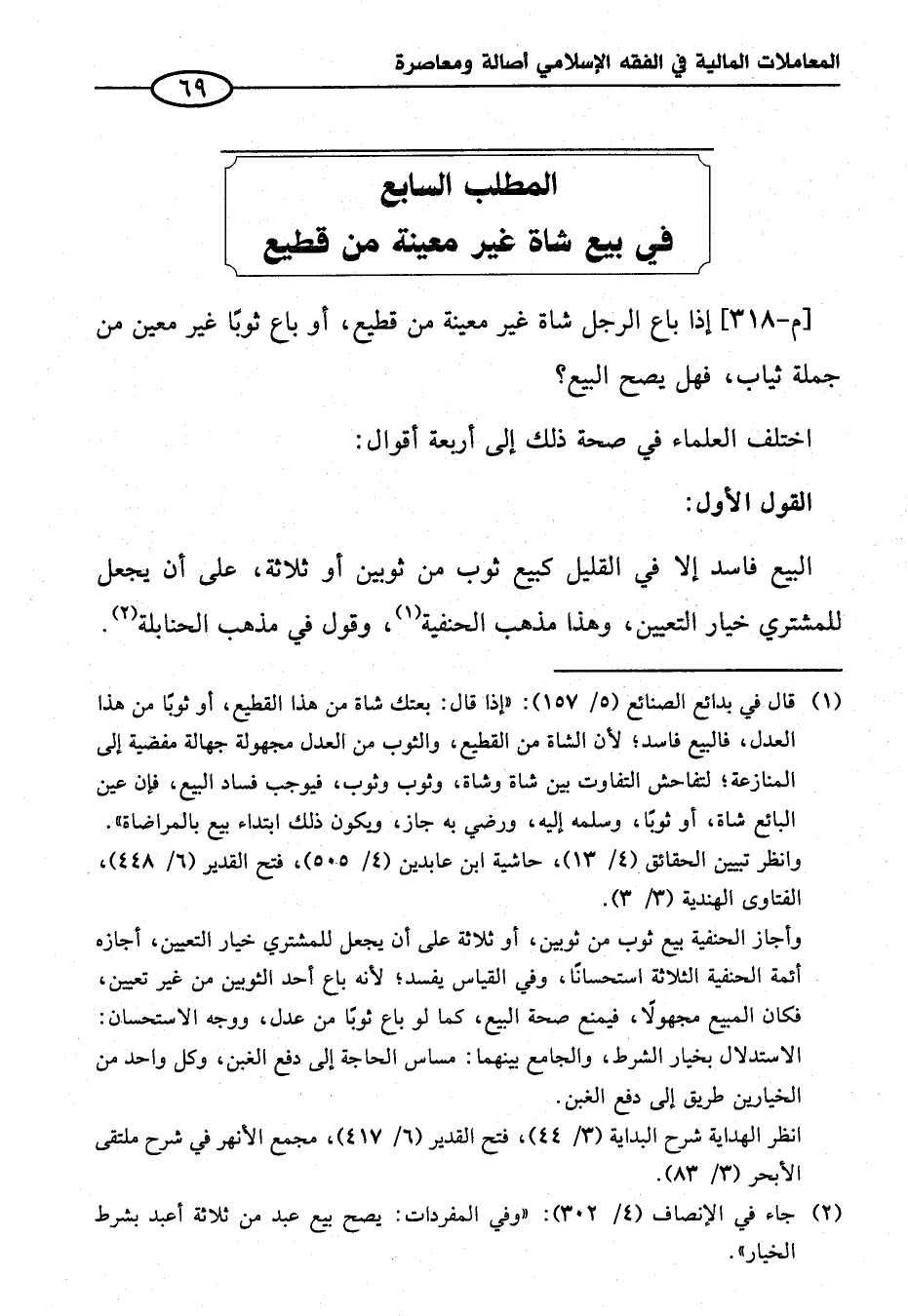 المطلب السابع في بيع شاة غير معينة من قطيع