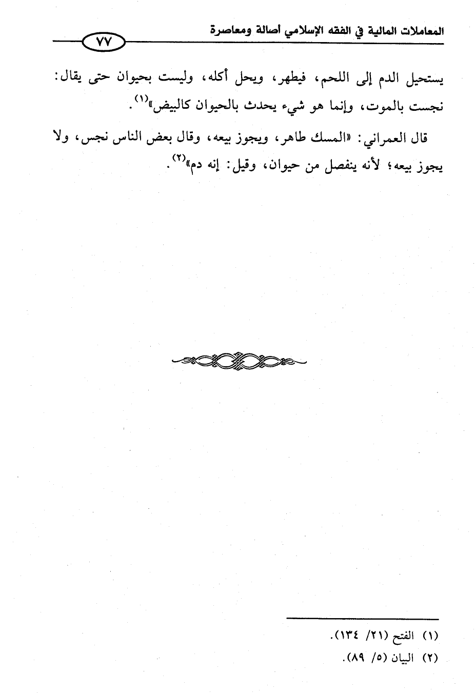 قال العمراني: "المسك طاهر، ويجوز بيعه، وقال بعض الناس نجس، ولا يجوز بيعه؛ لأنه ينفصل من حيوان، وقيل: إنه دم" (¬٢).