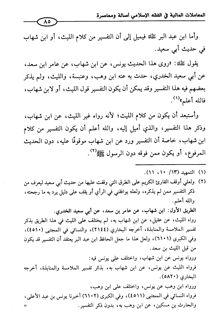 يقول - رحمه لله -: "روى هذا الحديث يونس، عن ابن شهاب، عن عامر ابن سعد، عن أبي سعيد الخدري، حدث به عنه ابن وهب، وعنبسة، والليث، ولم يذكر بعضهم فيه هذا التفسير وقد يمكن أن يكون التفسير قول الليث، أو لابن شهاب، فالله أعلم" (¬١).