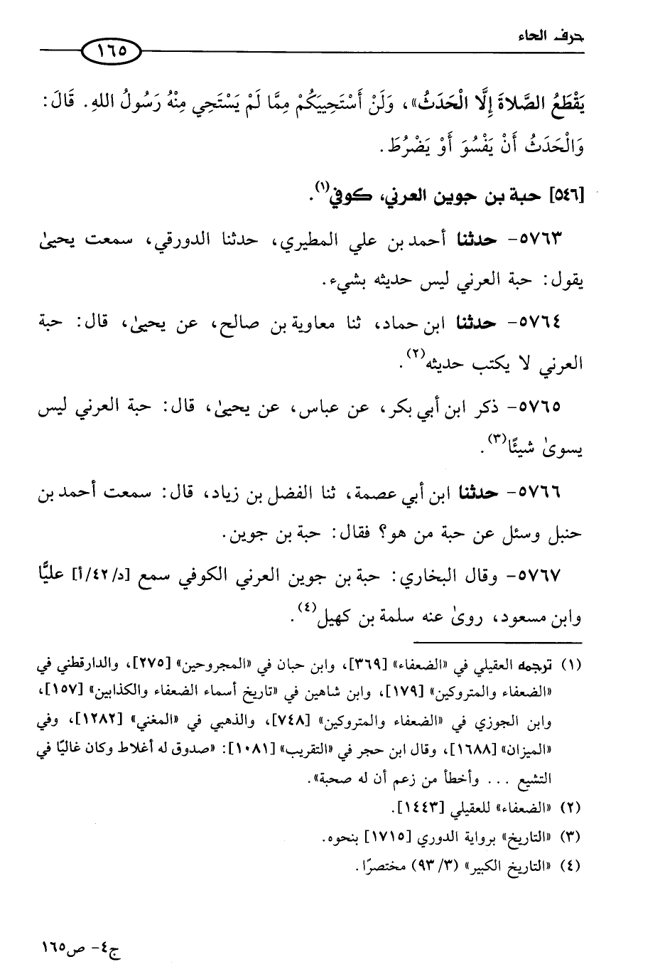 5766 - حَدثنا ابن أبي عصمة، حَدثنا الفضل بن زياد، قال: سمعتُ أحمد بن حنبل، وسُئِل عن حبة، من هو؟ فقال: حبة بن جوين.