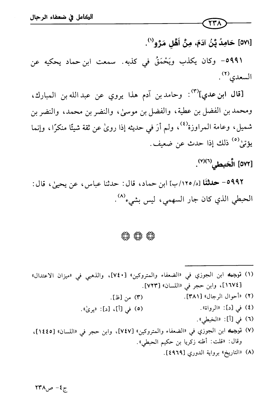 5991 - وكان يكذب ويحمق في كذبه. سمعتُ ابن حماد يحكيه، عن السعدي.