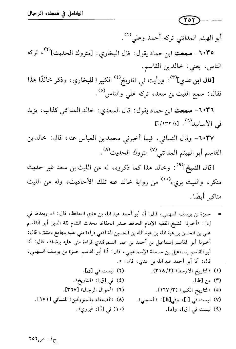 6036 - سمعتُ ابن حماد يقول: قال السعدي: خالد المدائني كذاب، يزيد في الأسانيد.