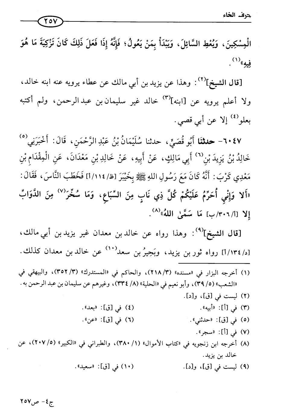 قال الشيخ: وهذا رواه عن خالد بن معدان غير يزيد بن أبي مالك، رواه ثور بن يزيد، وبحير بن سعد عن خالد بن معدان كذلك.