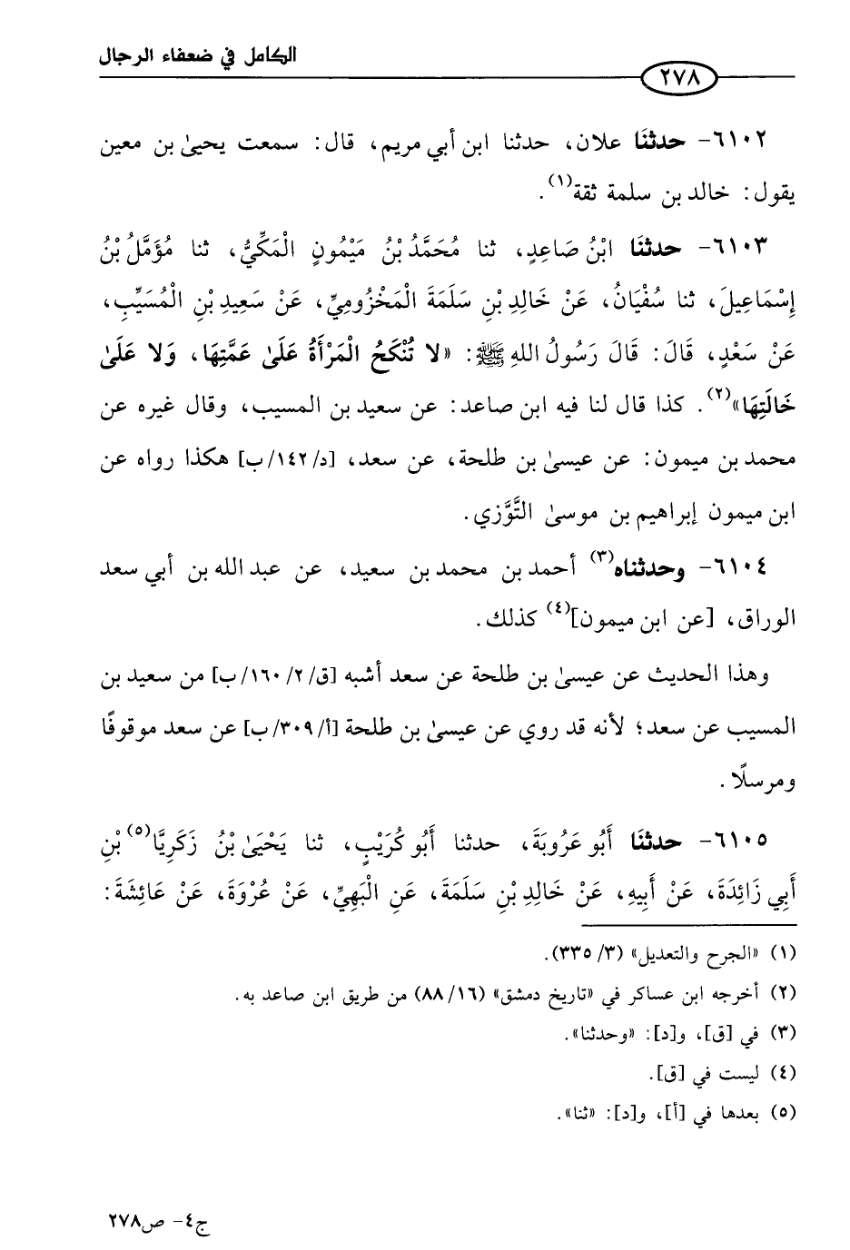 كتاب الكامل في ضعفاء الرجال لابن عدي - الرشد (اسم الجزء: 4)