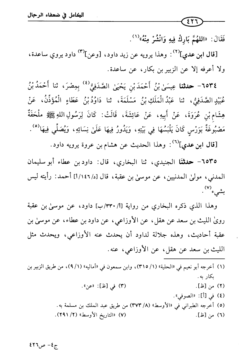 قال ابنُ عَدي: وهذا الحديث عن هشام بن عروة يرويه داود.